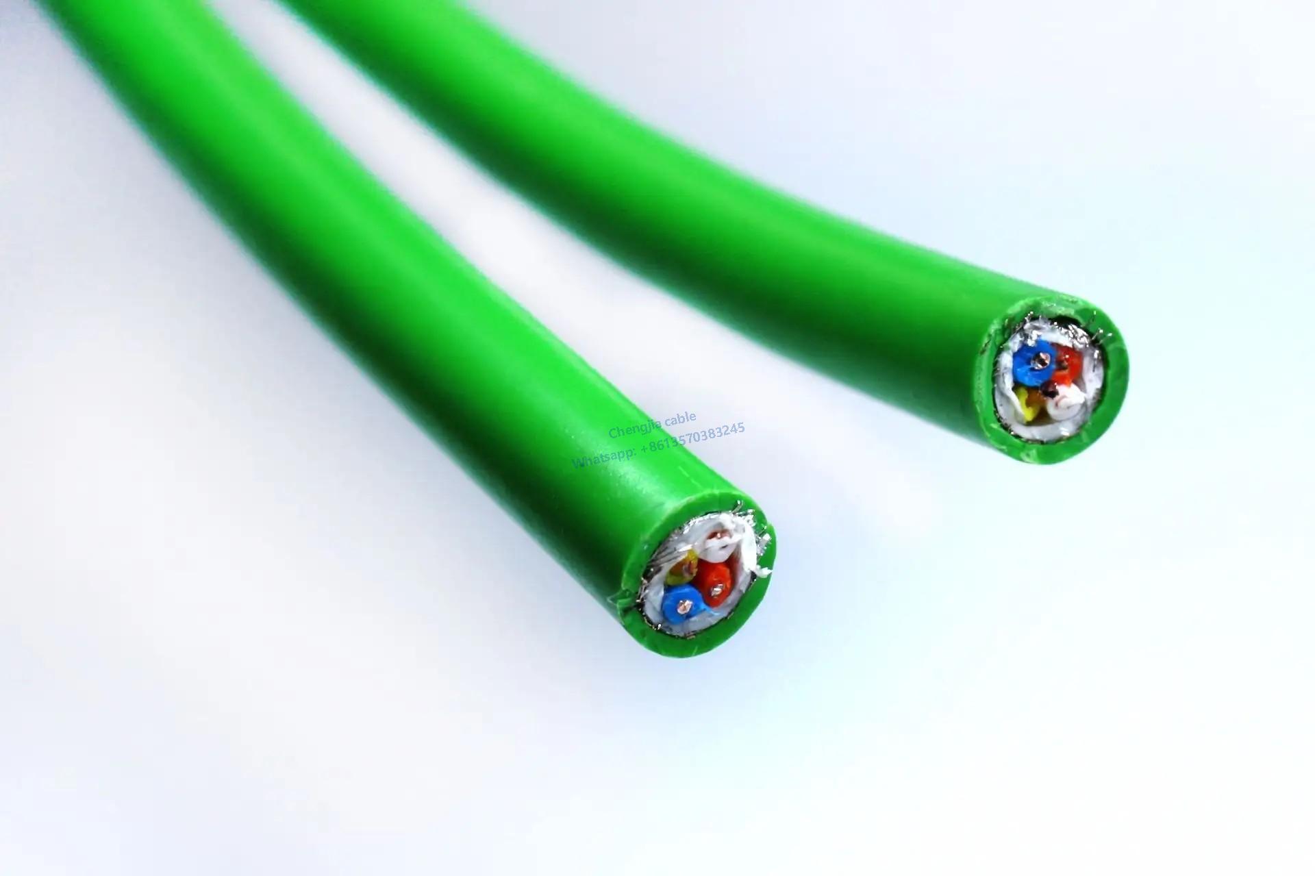 The cable features overall aluminum foil with tinned copper wire braid shielding, providing excellent electromagnetic interference resistance. The PVC sheath is flame-retardant and oil-resistant, while the PUR sheath offers outstanding mechanical resistance, abrasion resistance, oil resistance, acid and alkali resistance, hydrolysis resistance, corrosion resistance, and UV resistance, making it suitable for use in complex and harsh environments. The outer sheath color is green, with other colors available upon request.